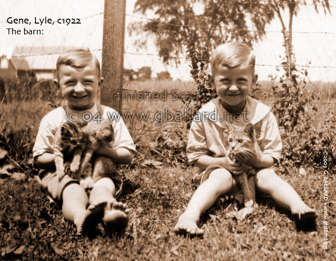 Northwest Ohio, 1922 Lyle Shine Buettner, Gene Buettner, pose with kittens cats on family farm, 1920s, Allen County, Ohio, Lima, Scott's Crossing, Elida, Delphos, Defiance Trail. This photo is one of the 500 scans and digital restorations I did for a 45minute family documentary movie DVD. An editied version of the movie may be viewed free on Terms of Use • Privacy Statement • Site Map |