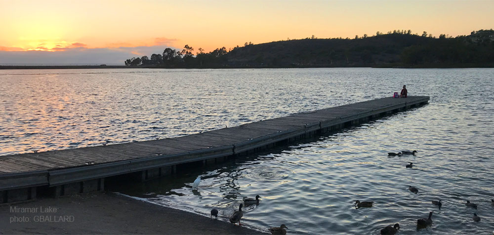 Hip Hop pictured sitting at the end of the boat dock on Miramar Lake.