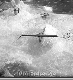 Point Loma lowers its stern gate announcing the launch like an opening curtain on a Broadway play as the tow boat creates tension on the towline.