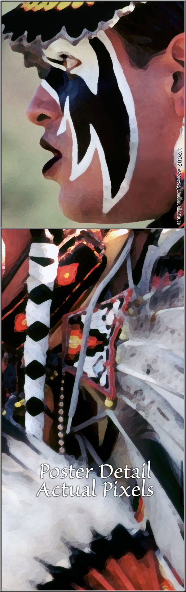 SYCUAN POWWOW POSTER 2001Sycuan 2001 pow-wow poster at 100 Percent, Actual Pixels. Artistic Photoshop effects photographer's portfolio. PARIS LEIGHTON-GREEN, Nez Perce Nation Photo and Photoshop ® artistry by G. Ballard, San Diego Graphic Designer |