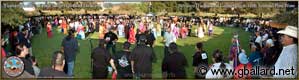 Beautiful wide panoramic event photograph of colorful Native American powwow in Southern California.